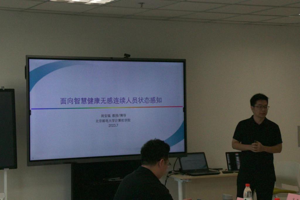 吴小俊团队对江苏省人工智能国际合作联合实验室的基本情况及近年来的主要科研成果进行了介绍。随后,北邮计算机学院赵东教授作了题为“群智感知2.0研究初探”的报告,北邮计算机学院周安福教授则分享了毫米波雷达在“面向智慧健康的无感连续人员状态感知研究”进展,北师大出版集团期刊社副社长陈雄就“基于创新人才培养的大学生活动构建,以大学生数学建模大赛为例”进行主题分享。几位专家结合自身及团队在“AI+感知技术”的产、学、研、赛等方面的科研积累进行了交流,内容精彩纷呈,使在场人员深受启发。在主题交流环节,现场的各位嘉宾纷纷畅所欲言,针对人工智能在工业和健康领域的融合发展进行了深入交流与互动,并分享了各自对于人工智能技术在相关行业中进一步发展的见解。