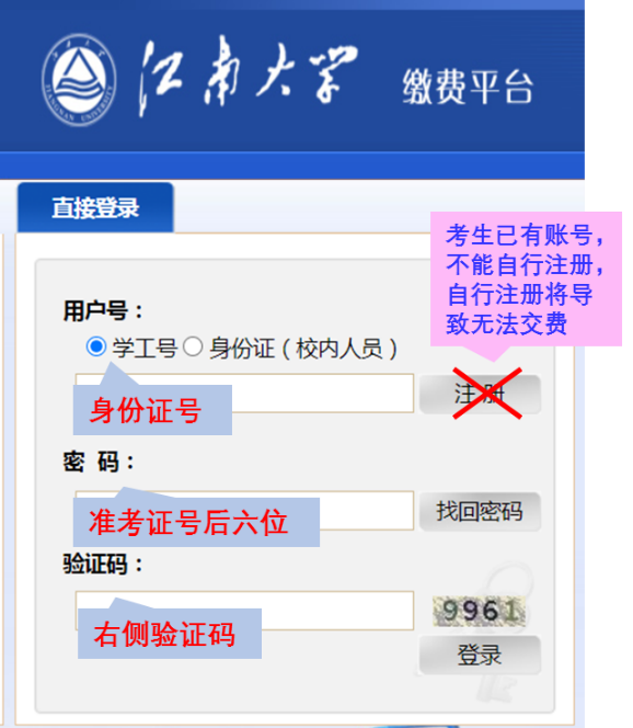 缴费平台”交纳复试费用,复试收费标准:80元/生。缴费网址://pay.wuwum.org/payment/。登录账号为准考证上的考生编号,登录密码为身份证后六位(友情提醒:考生账号已开通,切勿自行注册)。按照提示交费(使用网银),并打印或截图保存付费凭证。