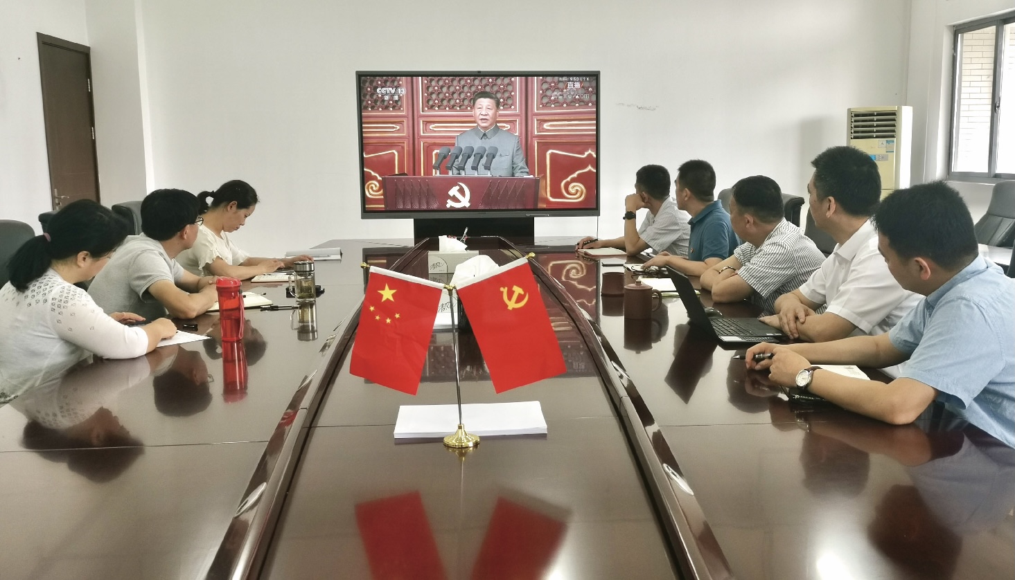 全体师生党员分五个分会场,怀着激动的心情全程观看了直播。直播结束后,各党支部随即召开支部会议,热议习近平总书记在庆祝大会上的讲话。