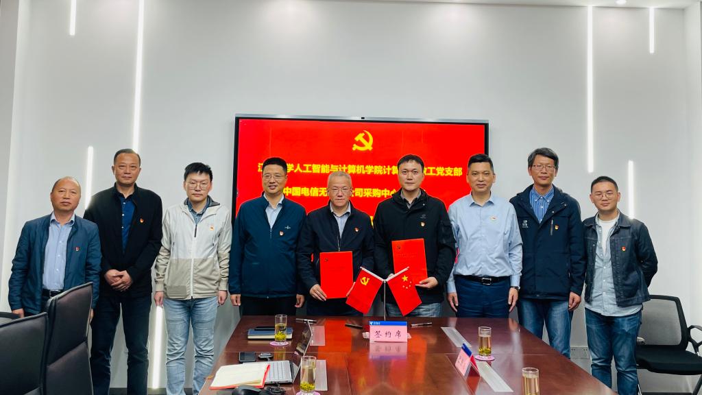 2022年10月18日下午,学院党委书记张华、计算机教工党支部书记宋威、支部委员杨金龙和陆恒扬等一行4人来到中国电信无锡分公司,举行支部共建签约仪式,中国电信无锡分公司党委委员、副总经理刘中云,采购中心党支部书记蒋耀新等共同参加。