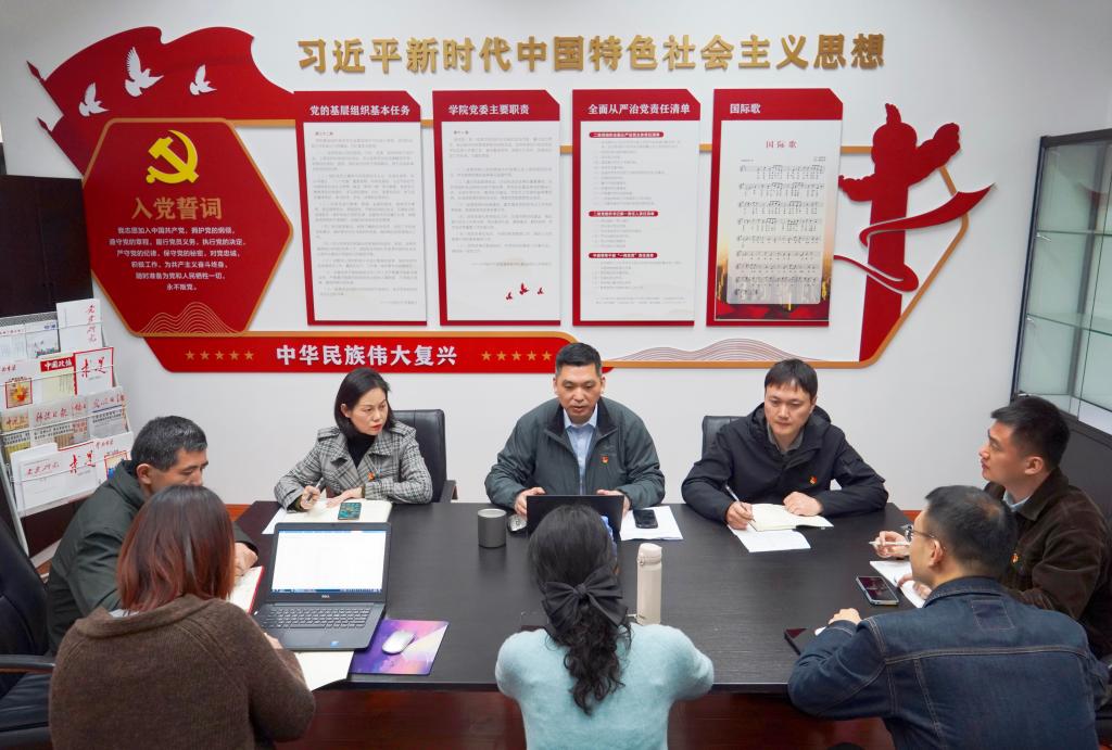 党委党支部书记工作例会在B321-1“双带头人教师党支部书记工作室”召开,会议由学院党委书记张华主持,学院党委副书记陈祎及学院党支部书记共计8人参加了会议。
