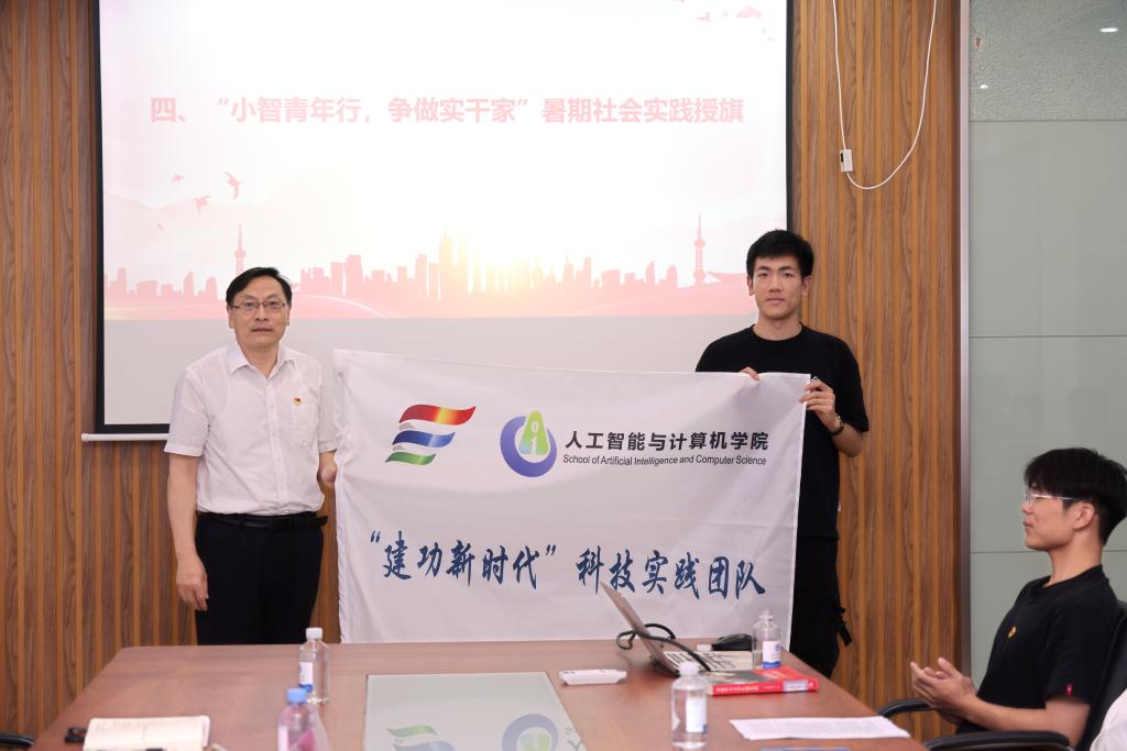 校长陈卫在2023年毕业典礼上的讲话以及自身参与社会实践的经历,向同学们阐述了“自找苦吃”的精神内涵,表达了青年学生要传承“自找苦吃”的品质,勇担科技报国的责任;点面结合地介绍了《习近平与大学生朋友们》的内容,分享了自己的阅读收获,引发了支部党员们的现场的学习讨论。支部党员张文杰结合科技热点chatGPT,分享自己面对科技前沿挑战时的态度和立场,激励广大同学将“卡脖子”技术难题作为今后学习和突破的方向,迎难而上,为实现高水平科技自立自强贡献自己的力量。活动还设置了主题教育互动问答和为学院暑期重点社会实践团队授旗等环节。