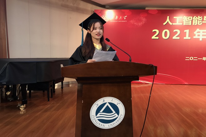 毕业生代表陈颖发言