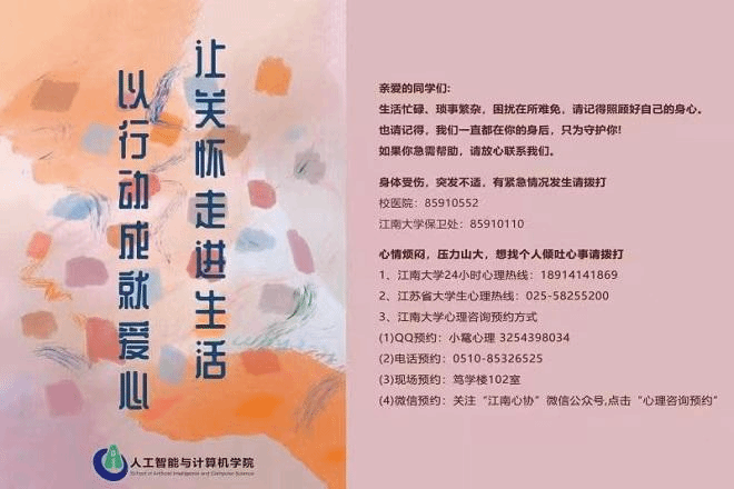 本次活动期间,学院精心制作心理健康贴纸,将心理咨询电话、急救电话等信息进行梳理,将贴纸张贴在信息楼走廊和各实验室门口,为学生提供人性化服务,让关怀走进生活,以行动成就爱心。