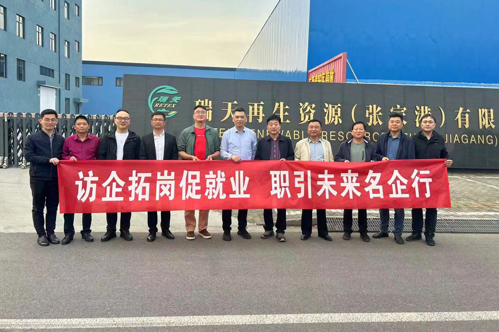 党委书记张华、副院长宋威等前往瑞天再生资源(张家港)有限公司走访调研,积极在传统制造业中开拓信息技术岗位。学院党建联盟共建单位无锡市泰州商会党支部书记周庄其等企业家陪同考察。