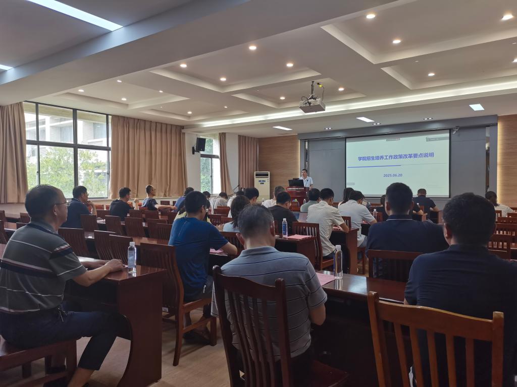 第一项议程是学院招生培养工作政策改革要点说明。谢院长从学院的招生工作、招生指标、学位授予等三个方面内容进行汇报,详细解说了以上内容的目标导向、改革措施。