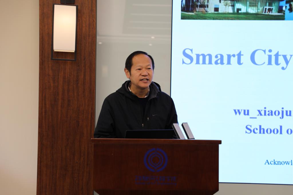 开幕式结束后,IEEE智慧城市试点委员会成员吴小俊教授为全体学员讲授了题为“AI for Smart Cities”的第一课。吴教授深入浅出地讲解了人工智能技术如何应用于智慧城市的建设中,包括但不限于智慧交通、智慧医疗以及环境保护等多个方面,并分享了多个成功的应用案例,激发了学员们对后续课程的浓厚兴趣。