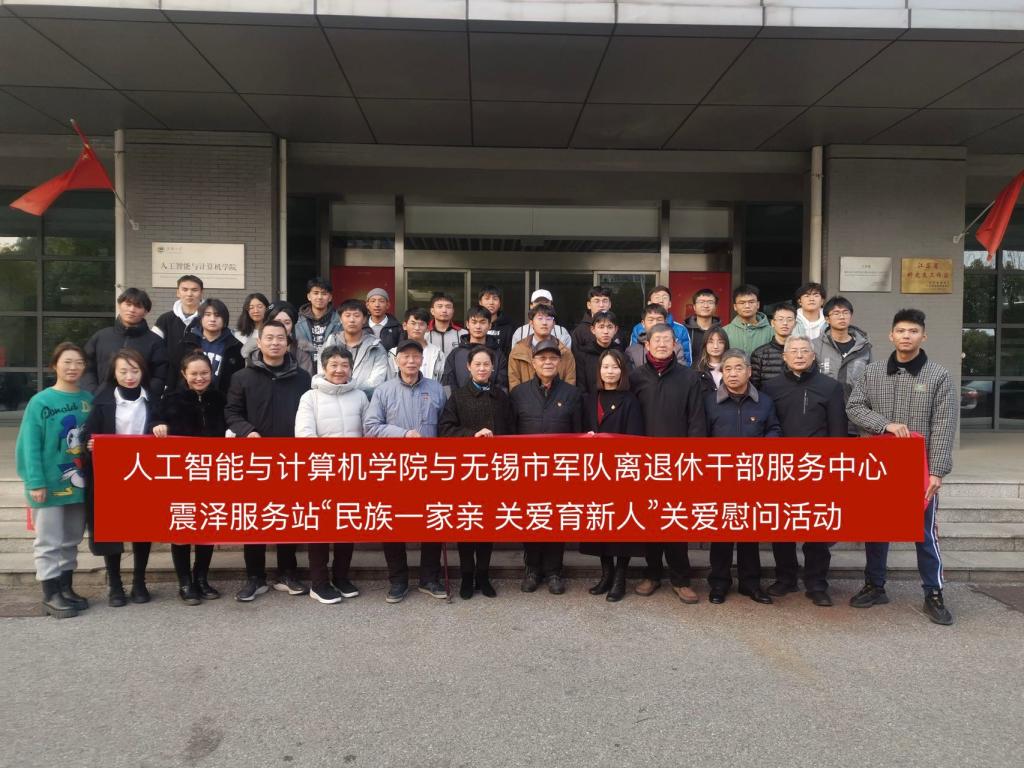 人工智能与计算机院党委副书记陈祎,无锡市军队离退休服务中心震泽服务站站长张菁、副站长常虹、党总支张发海、关工委桂亚东及服务站各党支部书记,污污漫