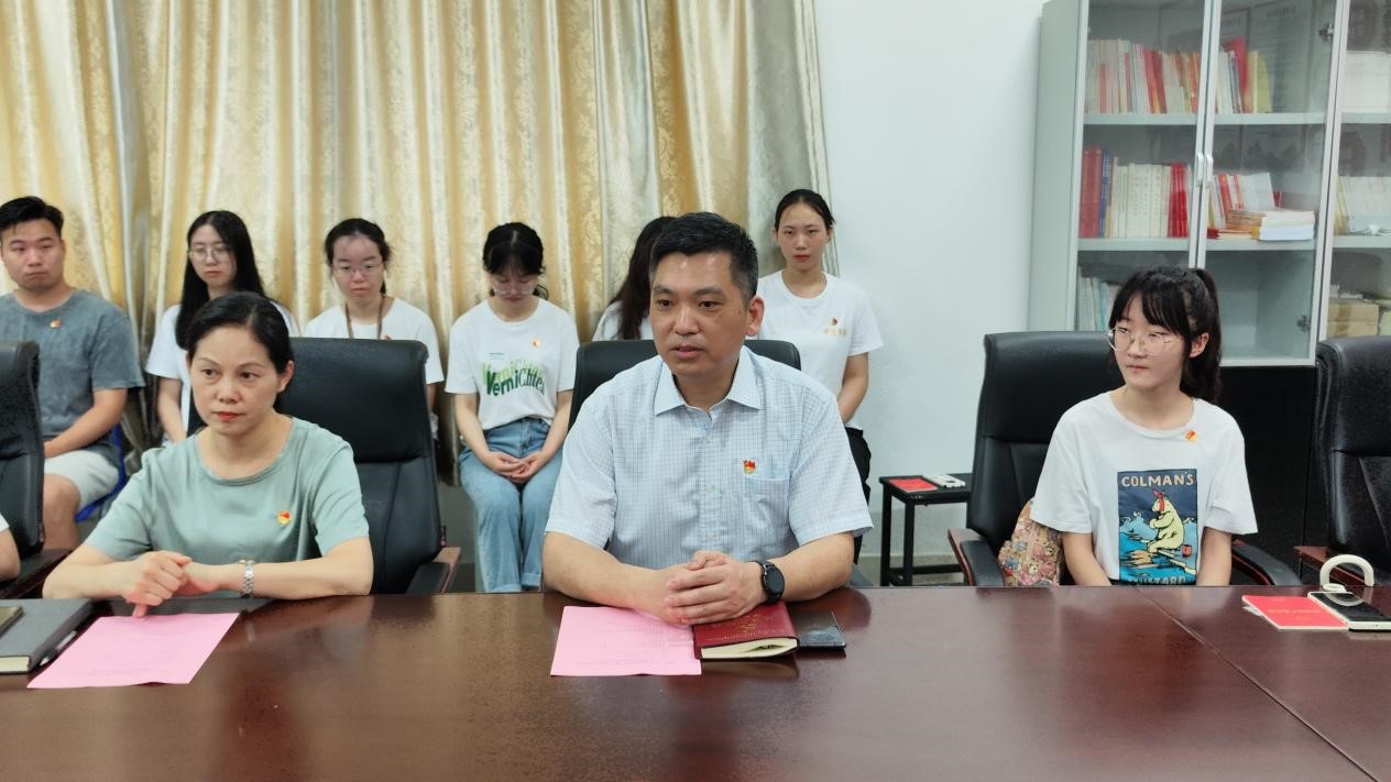 新党员入党宣誓仪式。学院党委书记张华,党委副书记、副院长陈祎,2022年上半年新发展党员参加会议。会议由学院辅导员李猛主持。