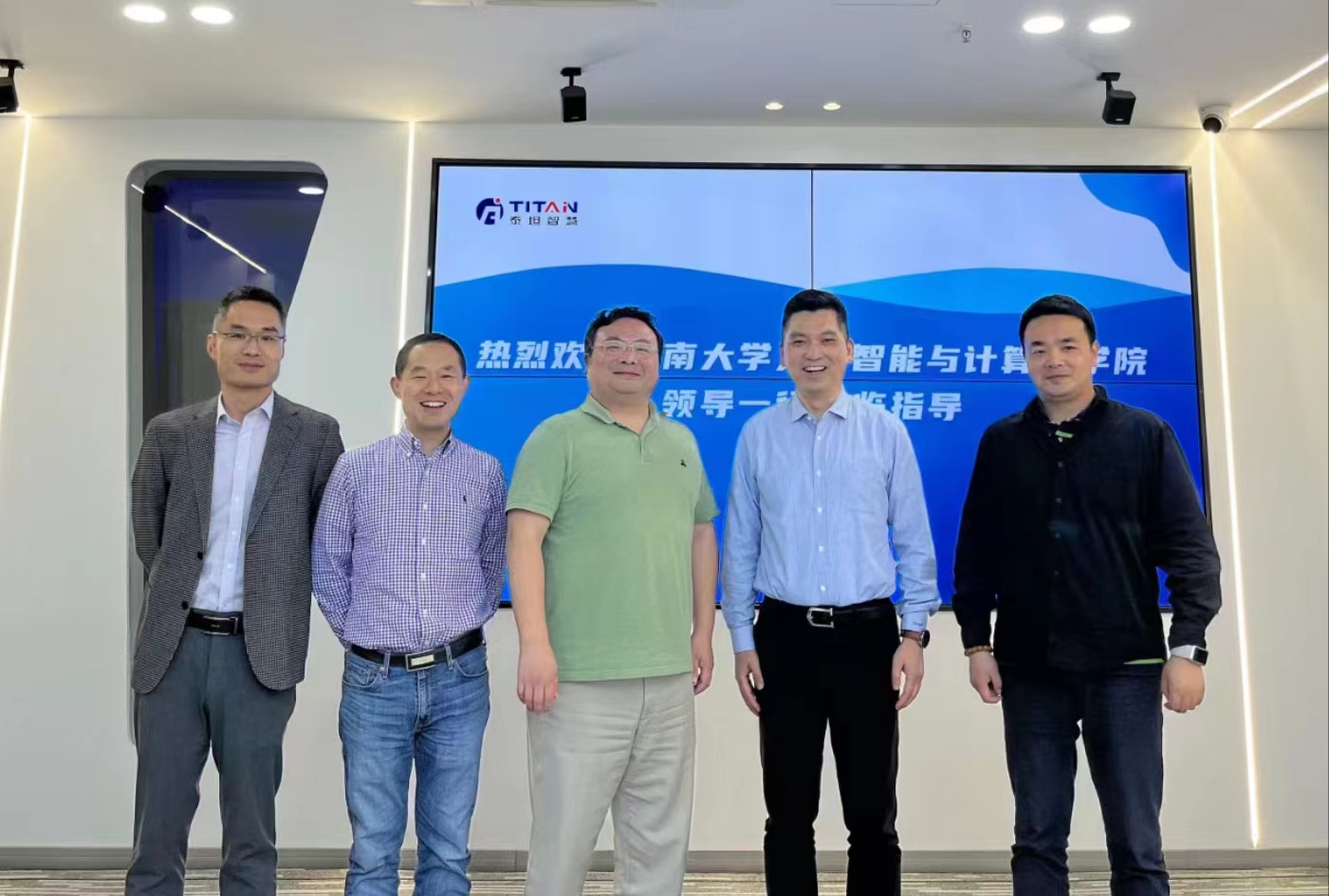 江苏泰坦智慧科技有限公司董事长郑龙对学院一行的到访表示热烈欢迎,表示泰坦智慧是一家以人工智能业务、算法及系统融合为基础,以与谷歌TensorFlow同源的数据流技术为优势的科技创新公司,在专业上与污污漫