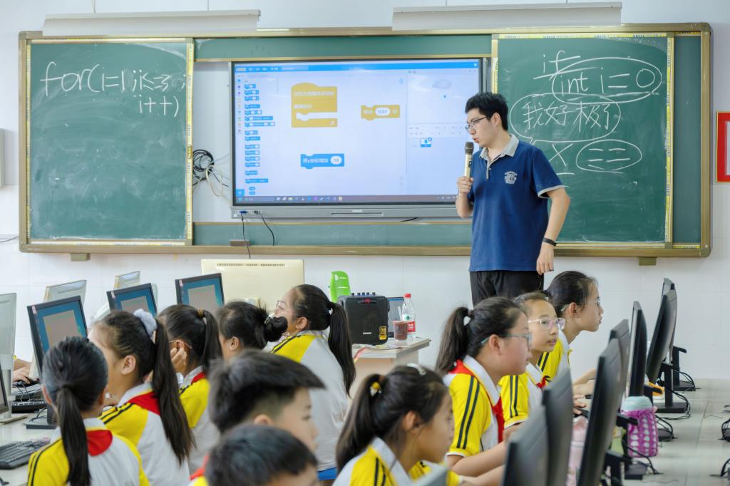于2023年6月组建“AI启程”少儿编程科普实践团,结合专业所学致力于向信息化水平欠发达地区的义务教育阶段学生普及人工智能知识,开展少儿编程基础课程,努力推进“双减”政策背景下素质教育城乡一体化均衡发展。暑期,团队师生奔赴山东省德州市陵城区开展少儿编程科普实践活动。
