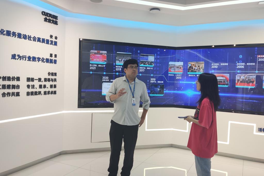 “友”话直说名企行暑期社会实践团于2022年7月组建,今年暑期,团队成员再次踏上行程,对国泰新点软件开展调研。国泰新点软件是政企数字化整体解决方案提供商、国家鼓励的重点软件企业,公司围绕智慧招采、智慧政务、数字建筑三大核心业务领域为政府、企业及相关单位提供全方位软件支持服务。