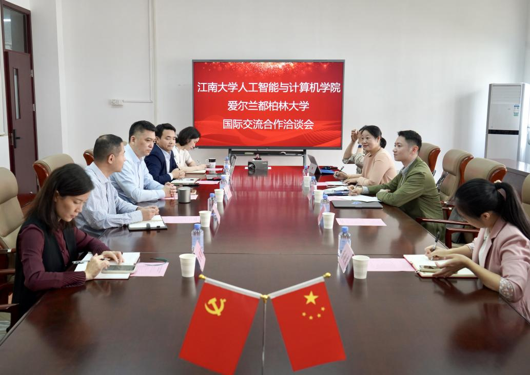 更多学院和学科跟都柏林大学开展合作。钱鹏江较详细地介绍了人工智能学院在发展历程、教师队伍、专业设置、学生培养、科研成果、平台基地和国际交流等方面的情况。蔡建英代表学校职能部门对人工智能学院与都柏林大学开展学生交换访学、本硕连培及教师科研合作等项目形式表示全力支持,表示学校愿意做好双方的桥梁纽带,积极促成双方更多、更大的项目成果。