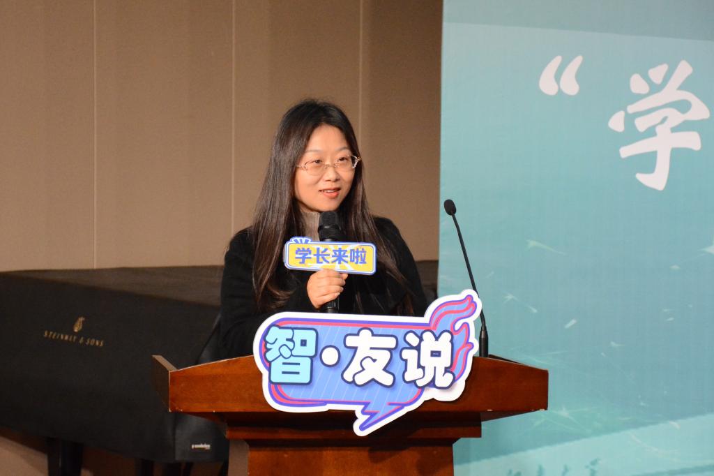 王莉莉向长期以来关心、支持学院建设与发展的校友表示感谢,对各位校友回家表示欢迎。她简要回顾了“学长来啦”活动走过的四年历程,并从用心学榜样、潜心学专业、精心做规划三个维度寄语现场学生。