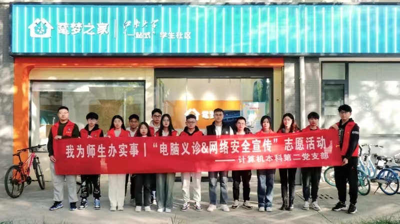 计算机本科第二党支部发挥专业特长,在南区“一站式”学生社区举办电脑义诊志愿活动。