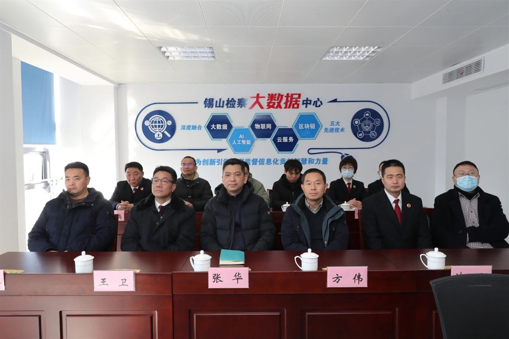 领导教师先后参观了检查服务中心、检查办案区、有声党建区、检查监督大数据中心等锡山检察院的办公区域。双方共同观看了公益诉讼智能研判平台的现场演示,了解人工智能与信息化技术应用于司法数字化建设的具体情况。