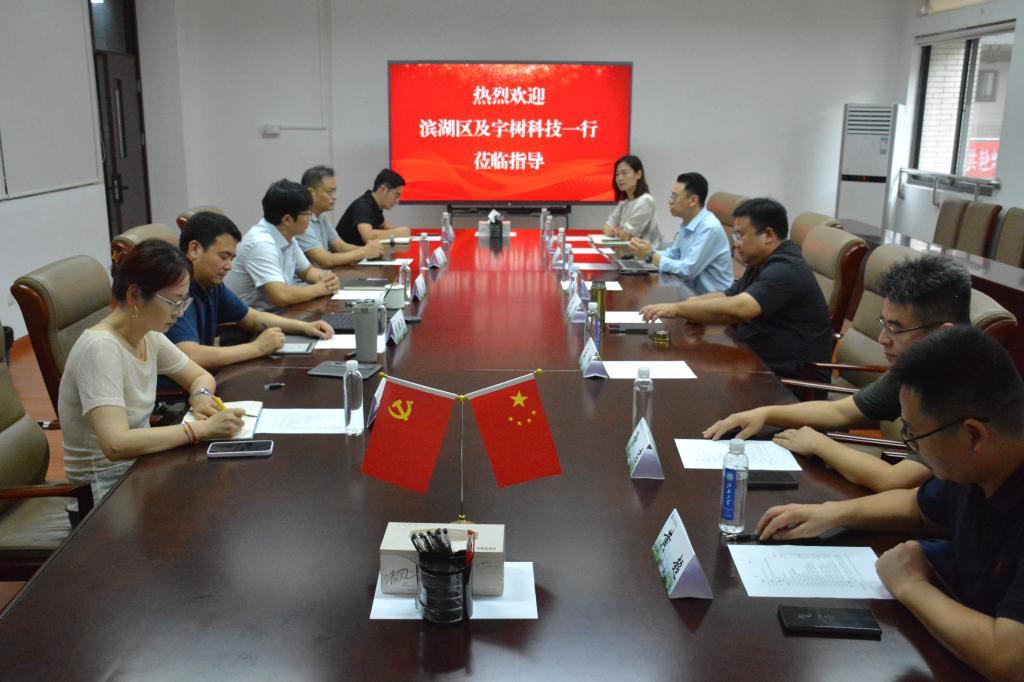 9月26日下午,杭州宇树科技有限公司副总经理姜俨峰、浙江阿拉的海文旅集团董事长李健来学院调研座谈,滨湖产业集团副总经理王峰、滨湖产业集团鼎星制造副总经理顾燕敏等陪同调研。污污漫