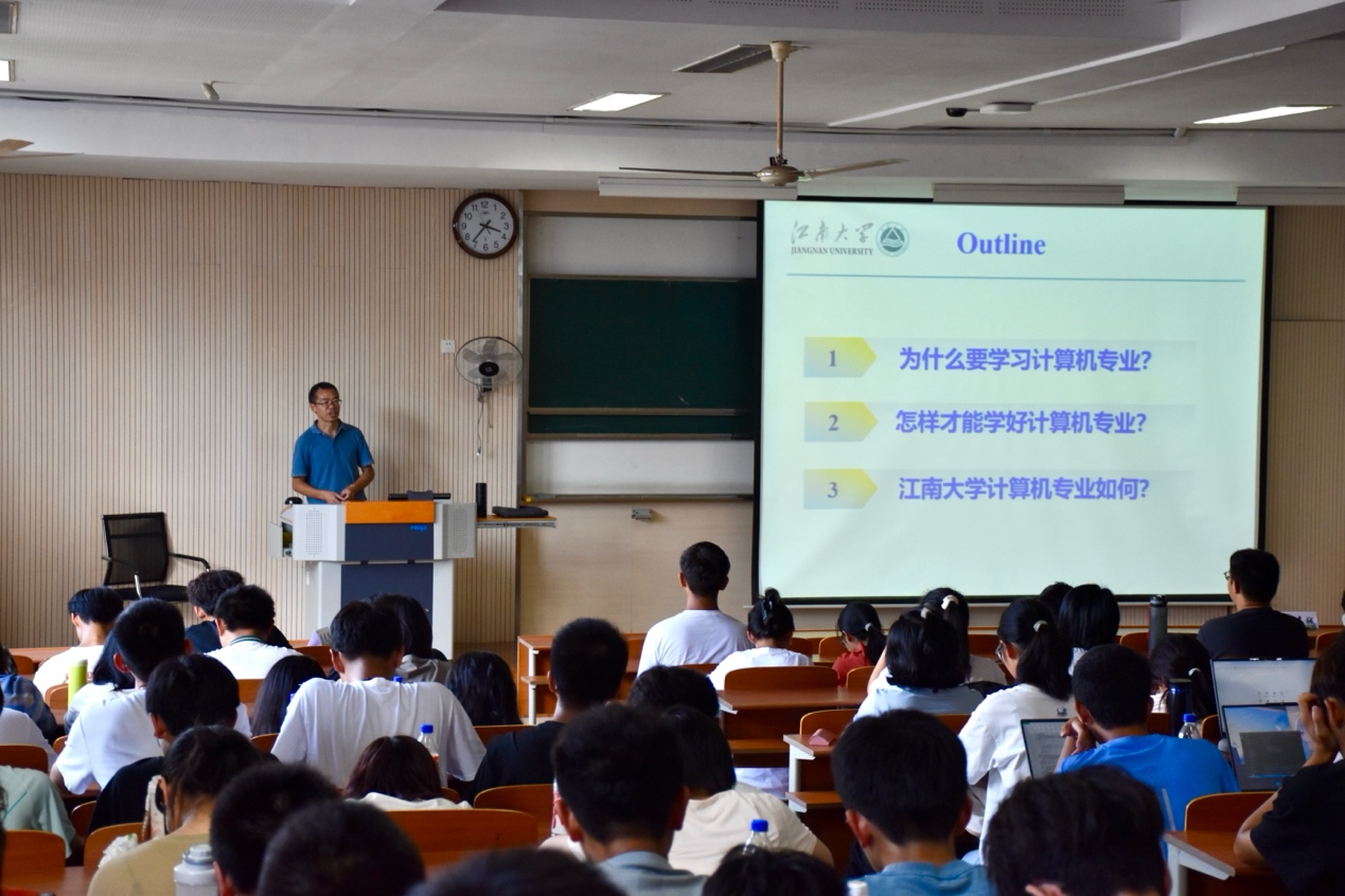 党委副书记、副院长王莉莉,学院教授、博士生导师王映辉、李光辉出席,王映辉和李光辉分别为人工智能、计算机科学与技术专业新生进行专业教育授课,2024级全体新生参加活动。