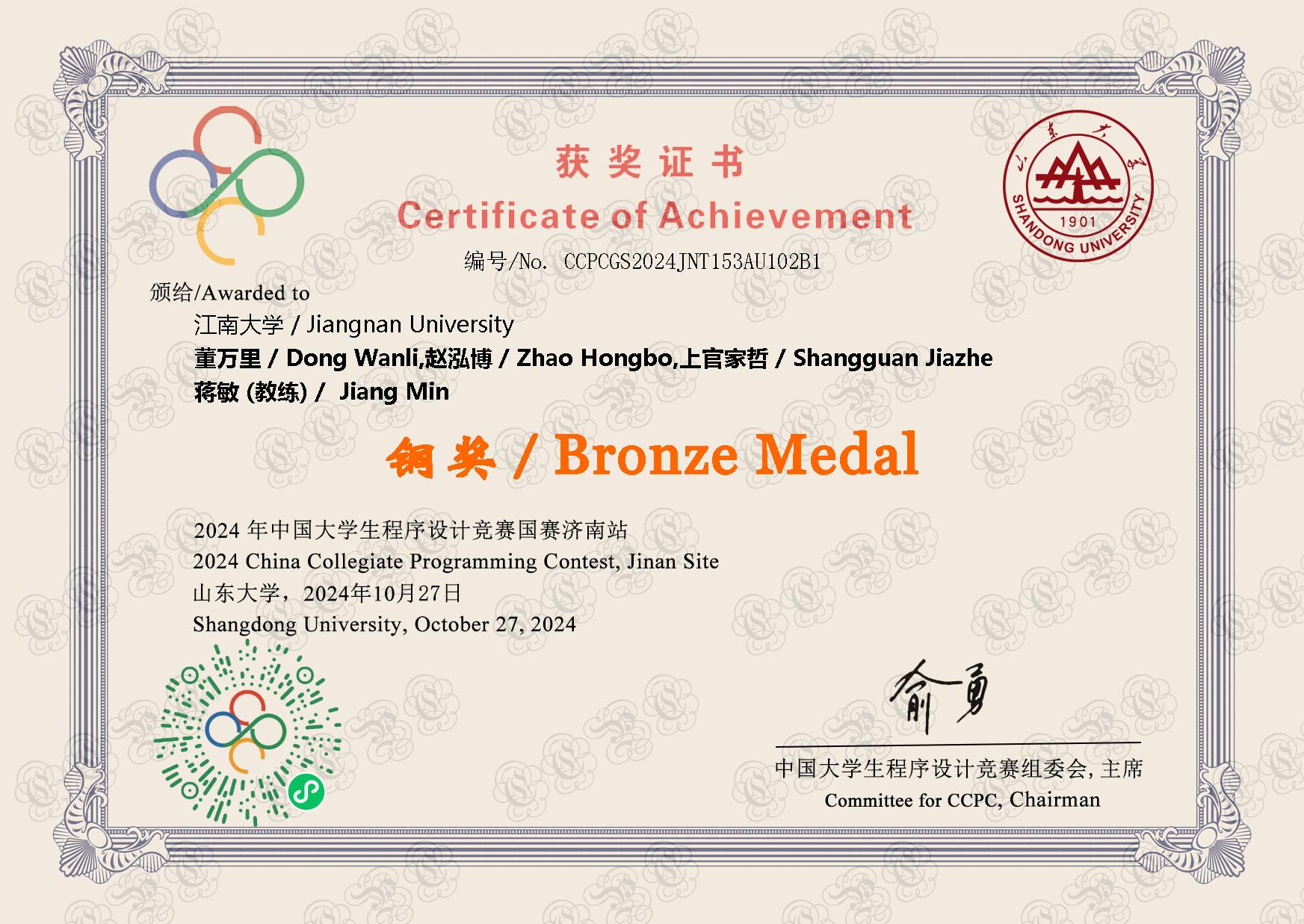 参赛队员进行了多轮高强度训练和模拟比赛,在蒋敏老师的悉心指导下不断提升技术水平和解题思路,为取得优异成绩奠定了坚实基础。这次铜奖的获得,离不开队员们的努力拼搏和指导老师的专业引领,也充分展现了学院在程序设计领域的综合实力。
