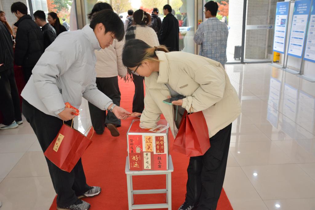 在学院大厅,考研学子们参与“研途幸运签盲盒”抽取活动,每一张幸运签上都写有满载正能量和好运的祝福语,为考研学子加油打气。方伟院长向全体考研学子表达了深切的关怀与祝福。他鼓励大家坚定考研信心,努力坚持到底,及时调整作息,保持健康体魄,在稳扎稳打中把控复习节奏,咬紧牙关全力以赴走进考场。他表示,学院永远是智能学子最坚强的后盾,有任何困难及时和学院反馈,并代表学院全体教师预祝同学们顺利考取心仪院校,金榜题名,一战成“硕”。随后,毕业班班主任老师和班级班委为每一位同学送上考研“福袋”。