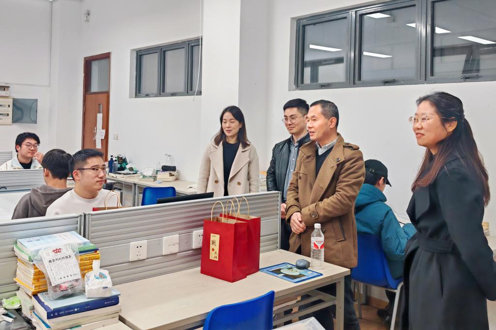 学院领导老师走进考研自习室,看望正在紧张备考的智能学子,并亲手送上考研“福袋。”他们与学生亲切交流,详细询问备考进展及生活情况,全面了解学生在备考过程中遇到的困难,为备考学生舒缓心理压力,提供考研前的指导和帮助。