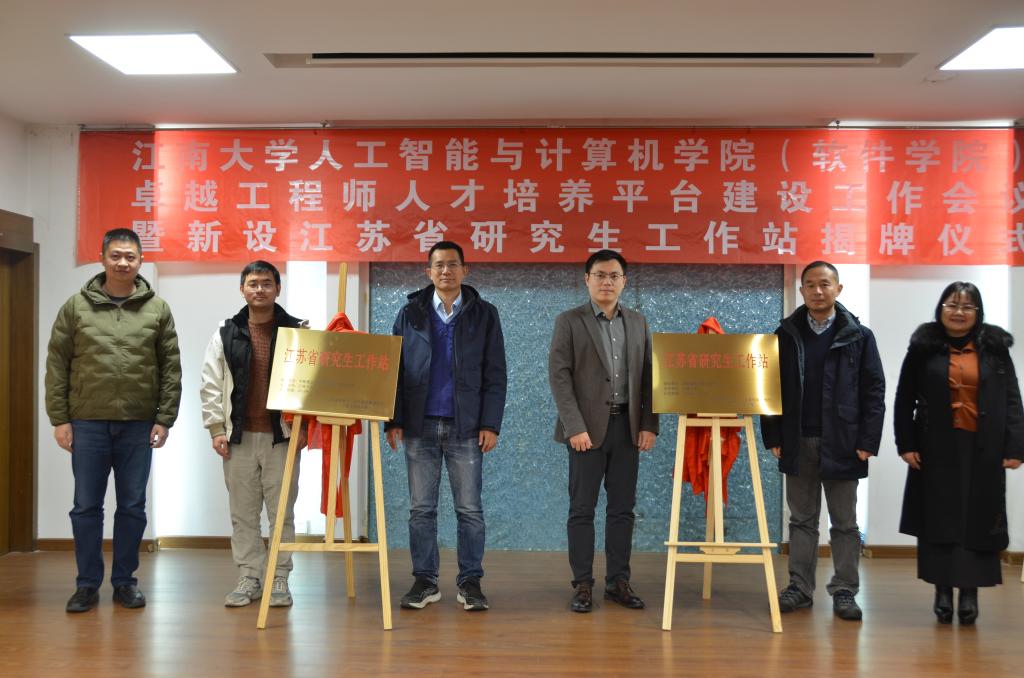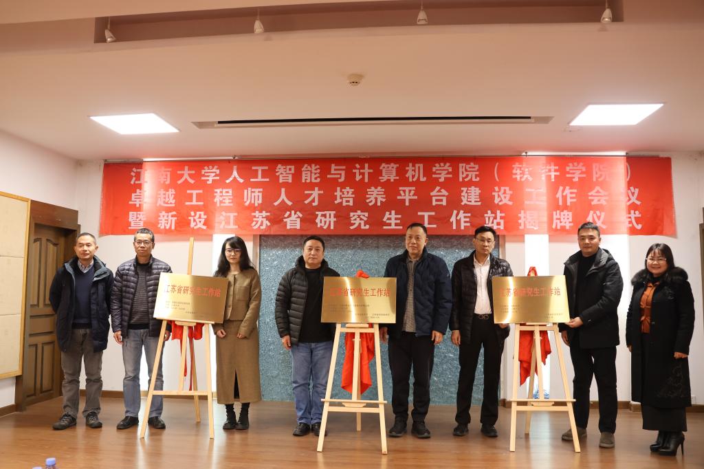 卓越工程师人才培养平台建设工作会议暨江苏省研究生工作站揭牌仪式在文浩馆205举行。西安电子科技大学昆山研究院副院长朱明哲、永中软件股份有限公司总经理谈辉、常熟市第一人民医院副书记俞建峰、中船奥蓝托无锡软件技术有限公司副总经理李锋、无锡车联天下信息技术有限公司副总经理张晓冬、江苏赛德力制药机械制造有限公司副总经理丁荣、国家超级计算无锡中心高性能计算技术研究中心主任刘钊、无锡先进技术研究院对外合作部副主任万珊,污污漫