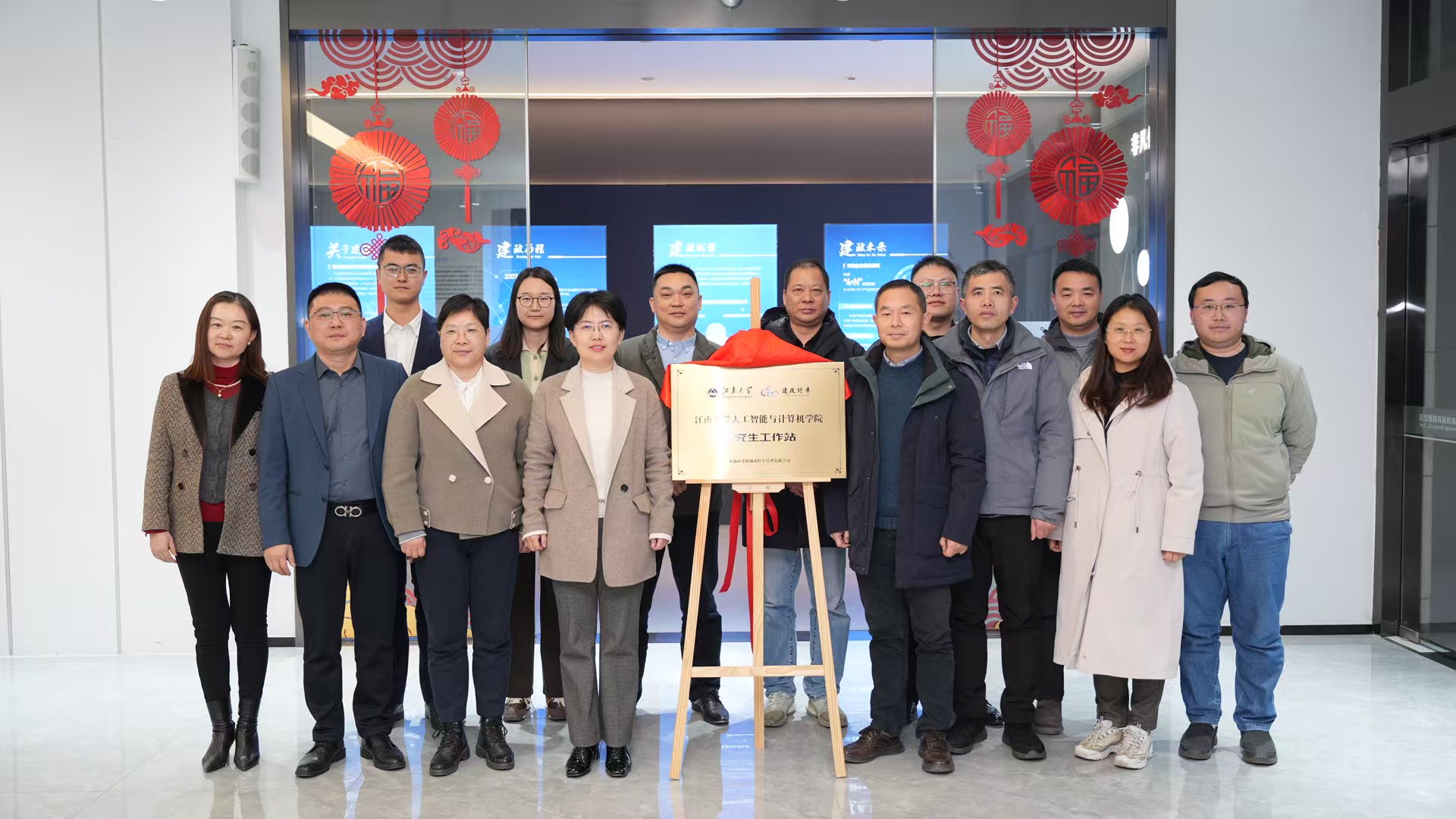 研究生工作站”。城建发展集团副总裁、建政停车公司董事长万妮娅,建政停车公司总经理安顺,建政停车公司党支部书记徐玉萍,建政停车公司副总经理沈雷,总经理助理吴国卿,数字赋能中心主任张丛丛、副主任袁程,污污漫