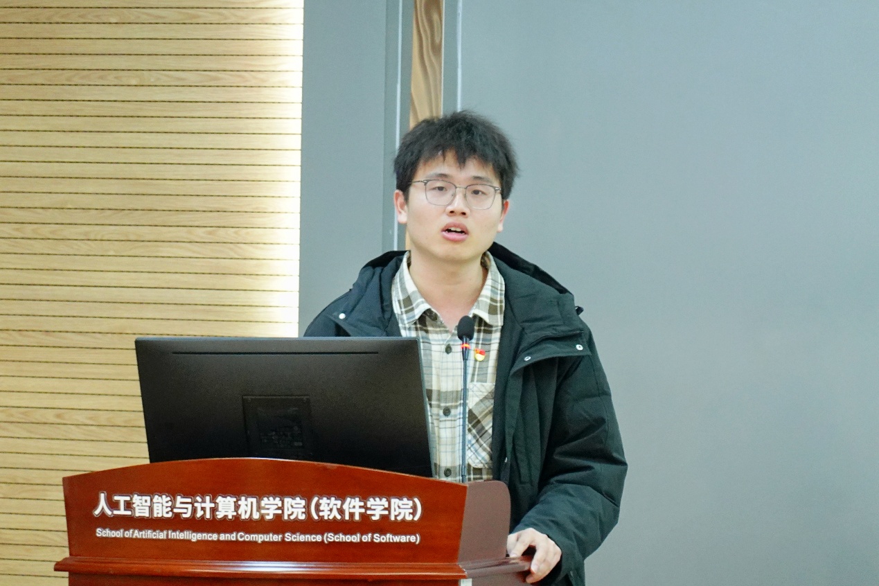 研究生第一党支部组织委员李民志汇报2025年支部工作情况。支部书记张文杰以《学习贯彻党的二十届四中全会精神:聚焦“人工智能+”战略》为题讲主题党课,重点围绕未来五年国家在加快人工智能等数智技术创新,突破基础理论和核心技术等方面的部署,阐释了加快实现高水平科技自立自强的前进方向和实践路径,号召智能学子争做“原始创新”的攀登者、“科技强国”的建设者和“智能向善”的守护者,为国家科技创新接续奋斗。支部成员、2022级博士生程春阳以《我在江南读博的日子》为题分享其读博期间的科研生活经历和成长感悟。