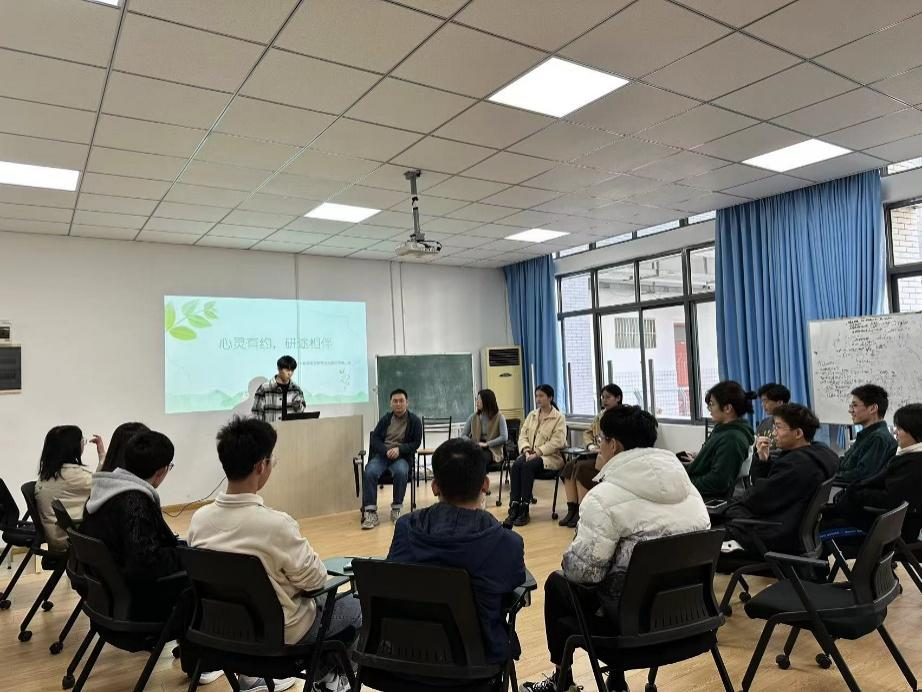 为引导我院研究生更好地自我成长,接纳自我,以更好的状态追寻自我目标,学院二级心理工作站特举办“心灵有约,研途相伴”青年教师走进研究生心理沙龙系列活动,旨在为研究生搭建一个缓解心理压力及生活指导平台。3月30日下午,心理沙龙活动第三期在学院团体心理辅导室顺利举行。本次活动邀请到我院青年教师、学院分团委副书记陆恒杨为学生答疑解惑,学院心理辅导员杨玉莹和15名研究生共同参与,活动由学院研究生会成员马明伟同学主持。