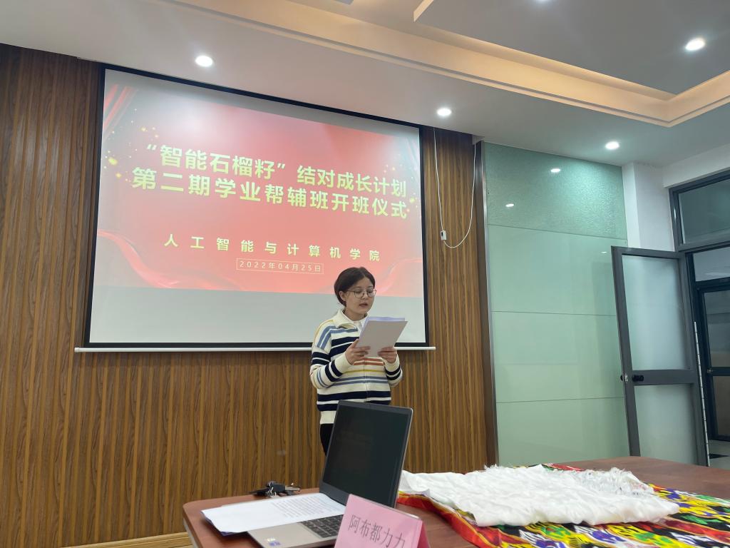 4月25日下午,人工智能与计算机学院2023年“智能石榴籽”结对成长学业帮辅计划第二期开班仪式在学院240会议室举行。江南大学学生工作处派驻老师古扎努尔、胡文波,学院分团委书记沈丹,辅导员米宁、麦日帕提,2022学年国家奖学金、国家励志奖学金获得者,帮辅班学员参加本次活动。