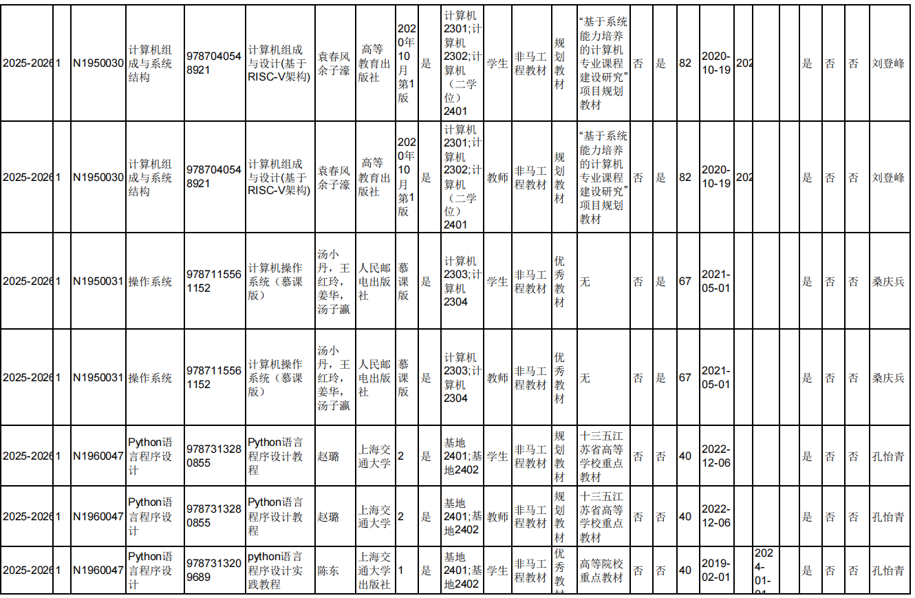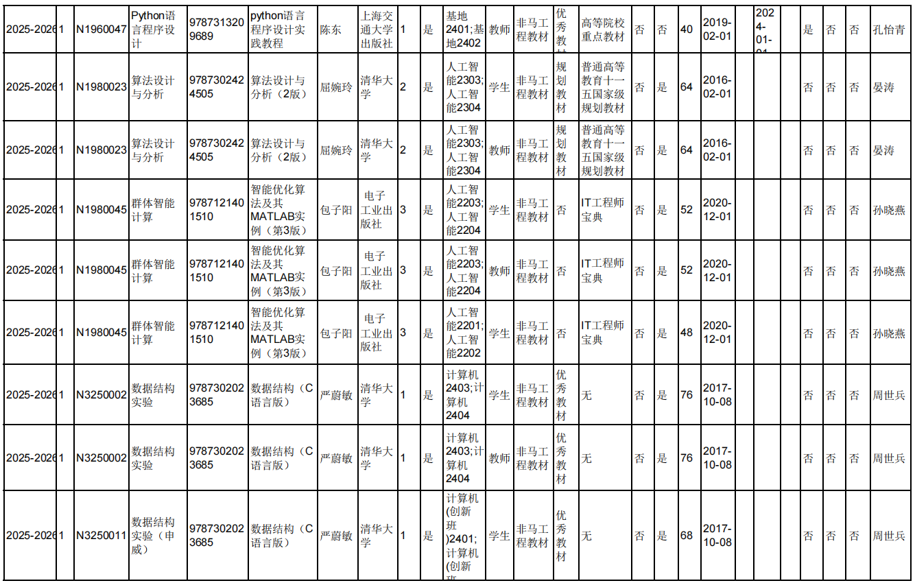 2025.6.5院教材审核专家对本院教师填报选用的2025-2026-1学期人工智能与计算机学院本科生教材进行现场审核,本院教师所选用的2025-2026-1学期人工智能与计算机学院本科生教材均符合教材选用要求。现将审核结果进行公示。