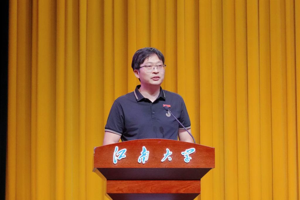 副院长谢振平在图书馆三楼报告厅为全体研究生新生做学术规范教育讲座。他从创新能力角度提出并解答了“有什么新问题、新方法、新结果”的研究生阶段需经历的渐进式难题,并对学硕、专硕及博士的毕业条件和要求进行了解读。希望同学们能够掌握目标导向的学习方式,实现课题研究与就业的平衡,在智能时代书写属于我们的江南故事。