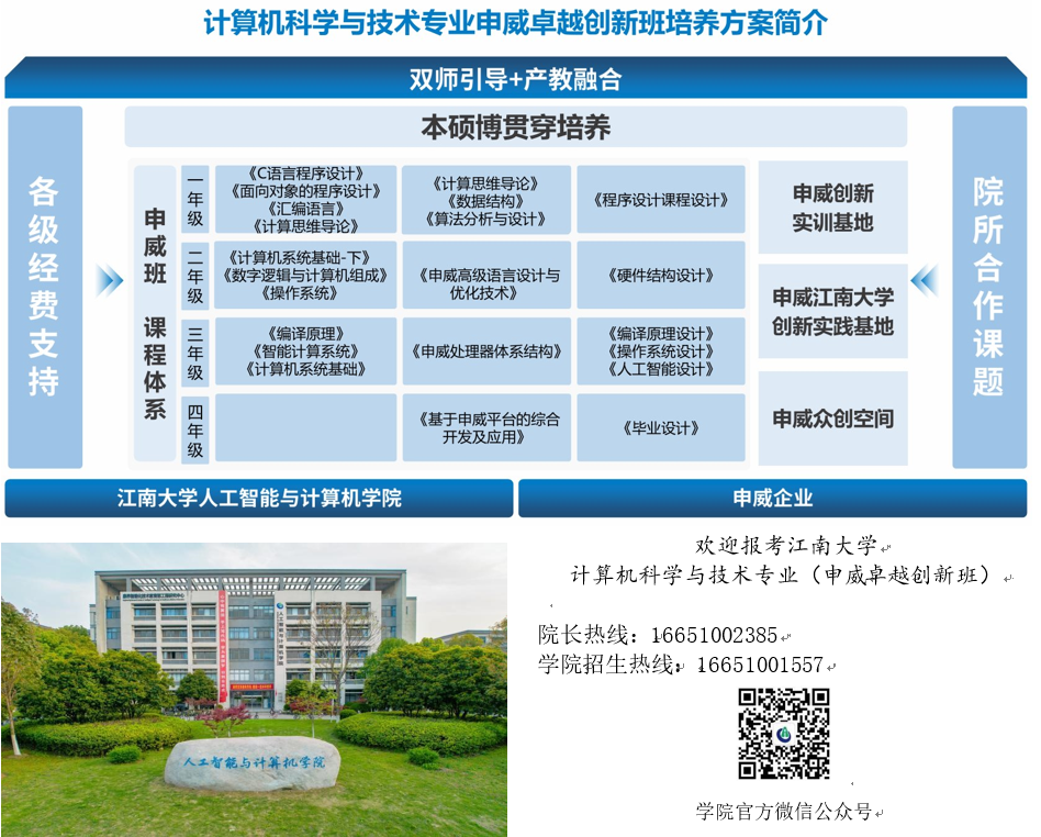 培养方案的顺利实施和持续优化,对一代代学生的不断培养,一定可以不断提升我国信息技术产业的自主化水平,增强我们应对外部环境不确定性的信心和底气,为教育强国奉献江南人的力量和智慧。欢迎全国各地的优秀学子填报污污漫