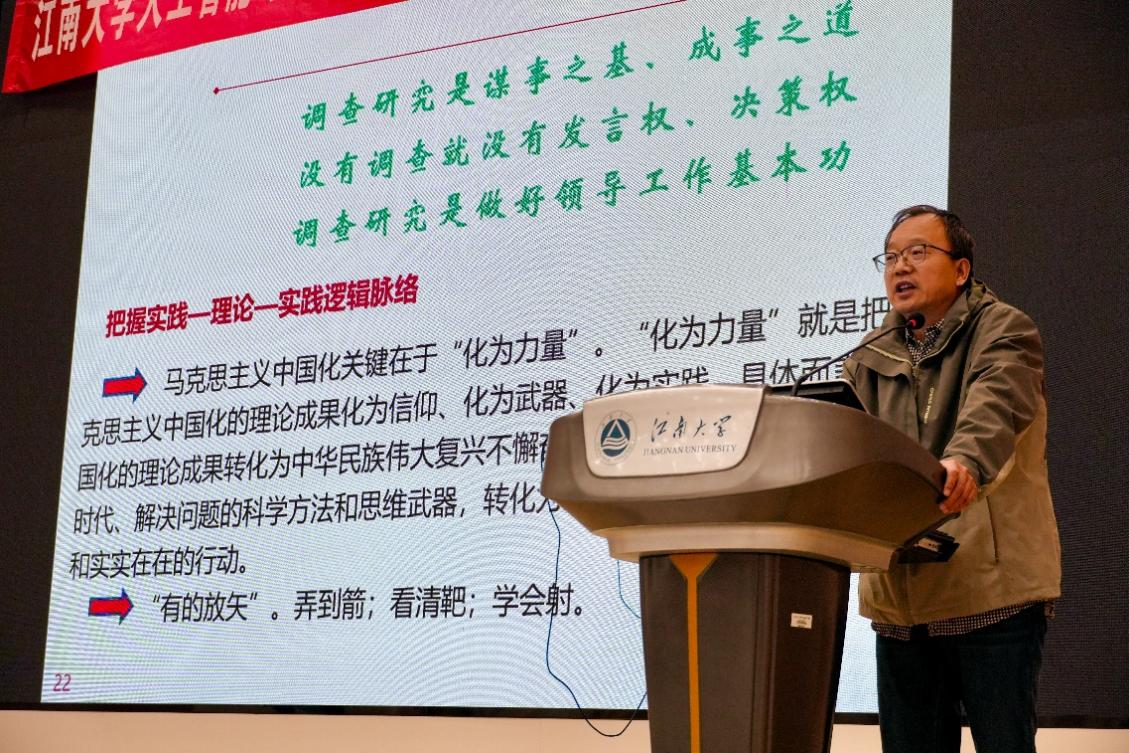开班仪式结束后,彭长华副教授以《马克思主义中国化视角谈调查研究的方法策略》为题,为全体学员带来理论学习第一讲。他从马克思主义中国化时代化的历史必然性、理论可能性与现实可行性三个维度切入,系统阐述了调查研究作为党的“传家宝”在新时代的重要意义。随后,他紧扣学员即将开展的社会实践与红色调研任务,深入解读了新时代调查研究“深、实、细、准、效”的五字核心要求,并结合党史中的经典案例与习近平总书记的调研实践,生动阐释了如何坚持实事求是、践行群众路线等关键方法。最后,他鼓励学员们将调查研究作为锤炼能力、增长才干的实践课堂,传承党的优良作风,在躬身实践中展现青年担当,书写无愧于时代的青春篇章。